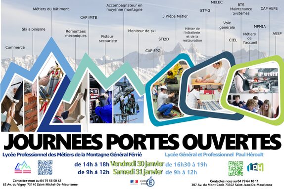 Portes ouvertes : Lycées de Maurienne : vendredi 30 et samedi 31 janvier 2026